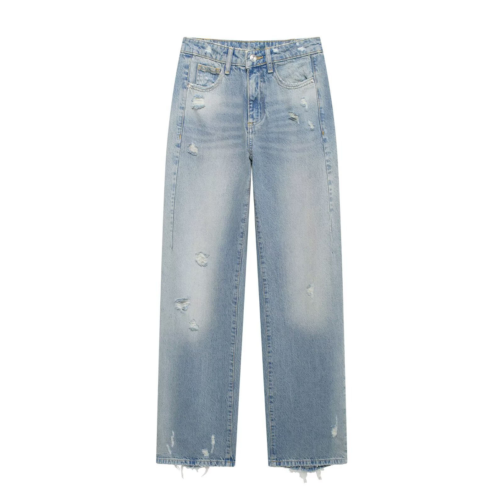 Women's Fashion Ripped Mid-Rise Straight Jeans