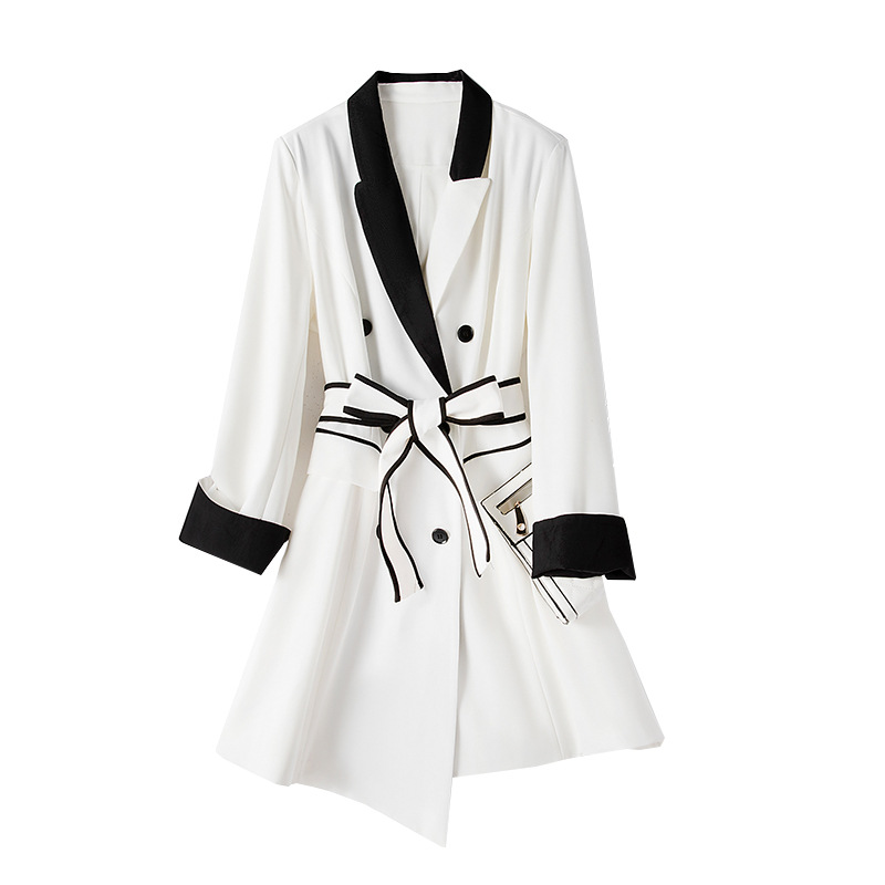 Large size French casual windbreaker 2024 fashion temperament slim waist long coat for women